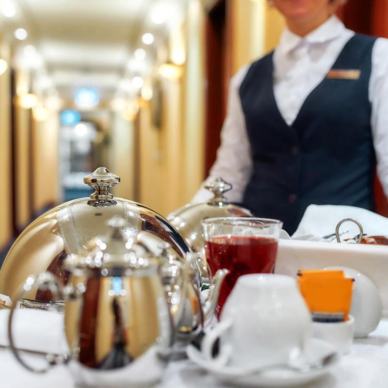 hoteli/pensjonatów oferujących usługę dostarczania posiłków do pokoi.